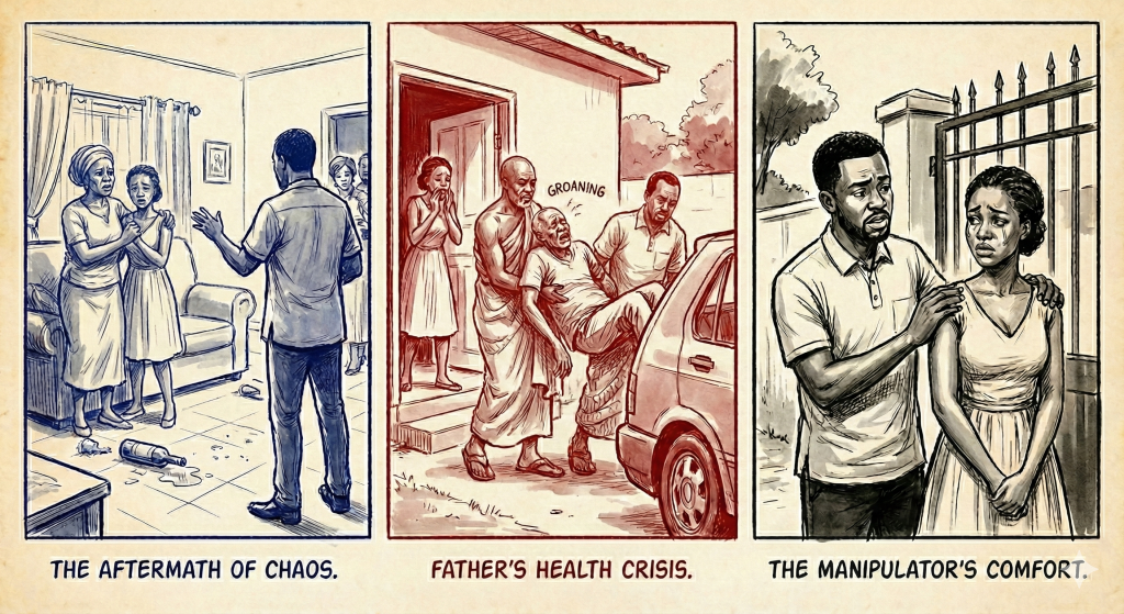 “No,” her father said sharply. “You stay here. You are in no state, and a police station is no place for a young woman alone, especially not today. We will take Opanyin to the hospital. We will go with you to the station later, once we know the old man is stable.”