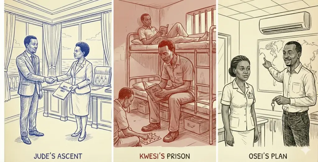 As they sat there, the picture-perfect couple of the new administration, Jude felt the final pieces of his fortress slide into place. He had the power, he had the girl, and he had the mandate of the President. In the dark cells of the Ashanti Central Prison, Kwesi Dankwa was becoming a memory. Here, in the golden light of Accra, Jude Asamoah was becoming a national hero.
