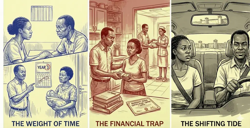 Life at the Tema Children’s Hospital was a relentless cycle of crying infants and overstretched resources. Abena had thrown herself into her work, seeking a specialised maternity nurse certification that demanded twelve-hour shifts and late-night study sessions. But the professional fulfilment was shadowed by a crushing financial reality. Due to the “administrative cleanup” mandated by the IMF program, the Ministry of Public Health had failed to upload the new cohort of nurses onto the payroll. For two years, Abena had worked for the state without receiving a single cedi in salary.