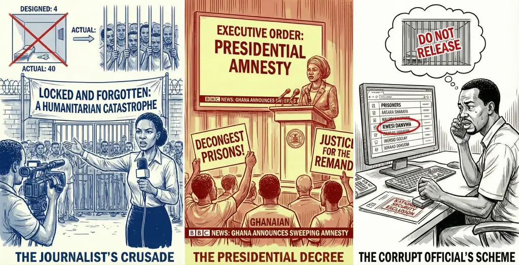 A fierce, relentless investigative journalist, Hilda had spent three years documenting the collapse of the Ghanaian penal system. Her documentary, Locked and Forgotten, was a visceral, horrifying journey into the bowels of prisons like the ACP. She didn’t focus on high-profile inmates; she focused on the “Remand and Forgotten”, men and women who had been arrested for petty theft or minor disputes and had spent seven, eight, or ten years in a cell without ever seeing a judge.