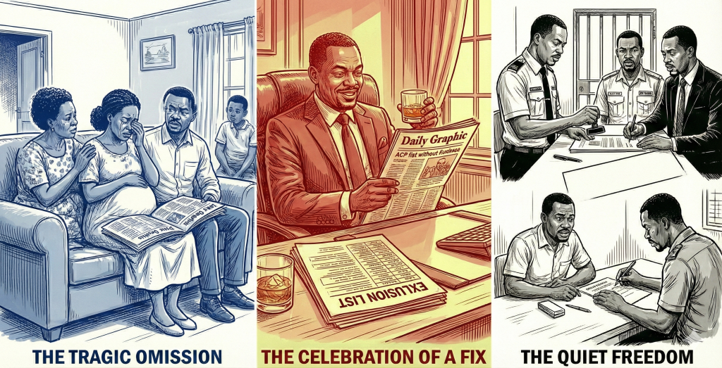 In Accra, Jude Asamoah sat in his office, the same edition of the Daily Graphic spread across his desk. He had cross-referenced the list three times against his private “Exclusion List.” He saw Tetteh’s work in the gaps. Kwesi Dankwa was still safely tucked away in Cell 12, a prisoner of the state and a prisoner of history.