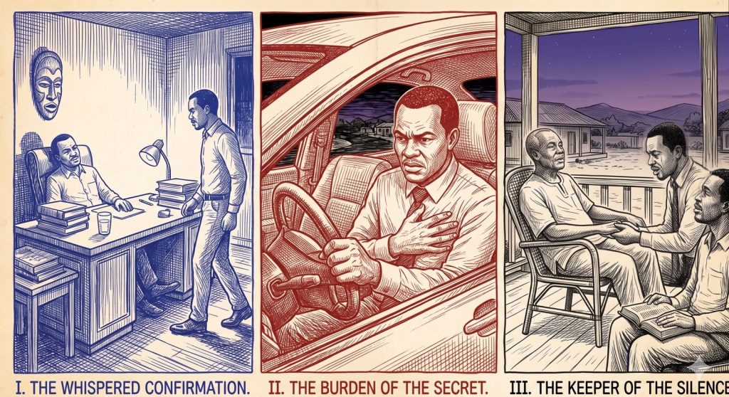Opanyin Dankwa looked out into the night, the physical paralysis of his stroke was gone, but he was now entering a new kind of stillness, the silence of a man who knows his son is a shadow. He nodded slowly, the resolve of a Dankwa returning to his spine.
